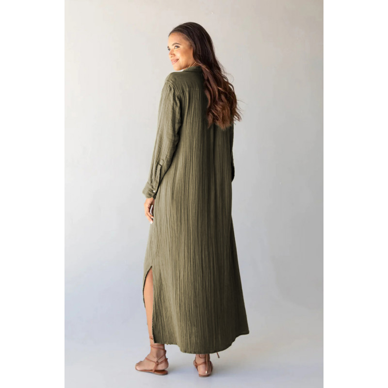 Zelena maksi haljina sa naboranim džepovima sa strane