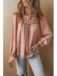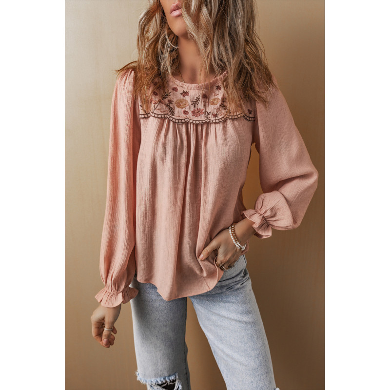 Bluza s cvijetnim vezom i okruglim vratom